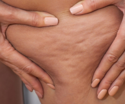 Cellulite is a term used to describe the dimpled appearance of skin caused by fat deposits that are just below the surface of the skin. It generally appears on skin at the hips, thighs, and pelvic region. More commonly found in women than men due to genetic and hormonal reasons. Lack of exercise and poor diet (fatty food and little drinking) may increase the risk of getting cellulite. Smoking makes it worse.