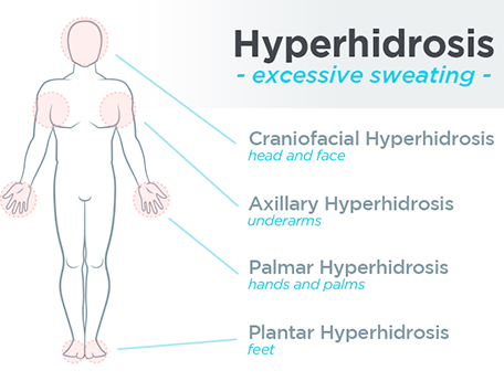 suffering from hyperhidrosis exhibit sweating that exceeds the body’s need for thermal