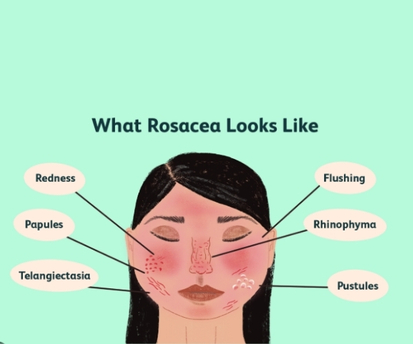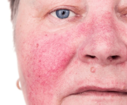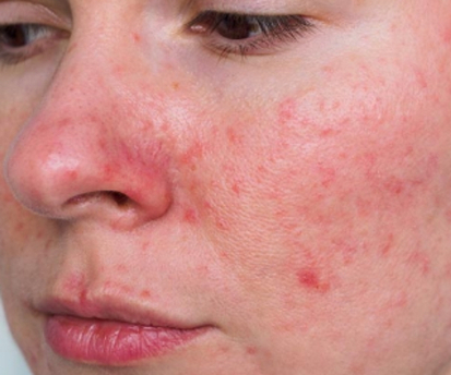 It causes redness – and sometimes small bumps or pimples – on the nose, cheeks, chin and forehead. It also can cause burning and soreness in the eyes.